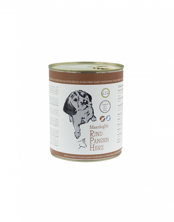 Für Ihren Sportler nur das Beste: saftiges Rindfleisch, schmackhafter Pansen, leckeres Herz und unsere einzigartige Algenmischung, die den Körper in sein mineralisches Gleichgewicht bringt. MaxidogVit Rind Pansen Herz ist genau das Richtige für aktive Hunde, die sehr sättigendes Futter brauchen.