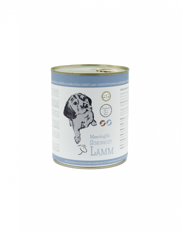 Unsere MaxidogVit Schonkost mit Lamm ist genau das Richtige für empfindliche Hunde, ältere Hunde, Allergiker und Hunde mit Magenproblemen.